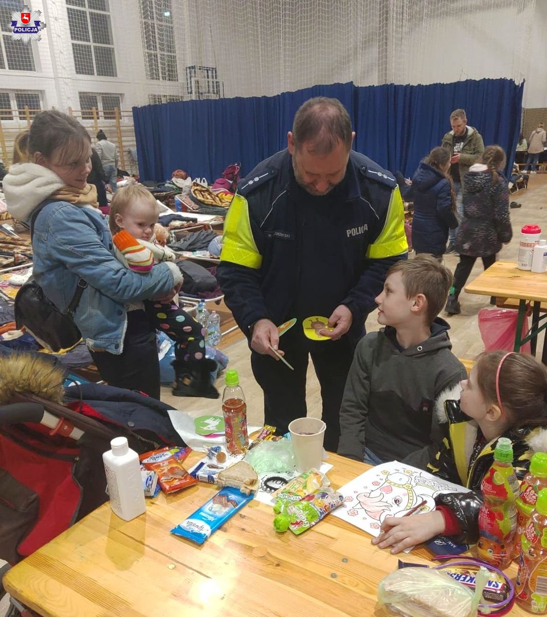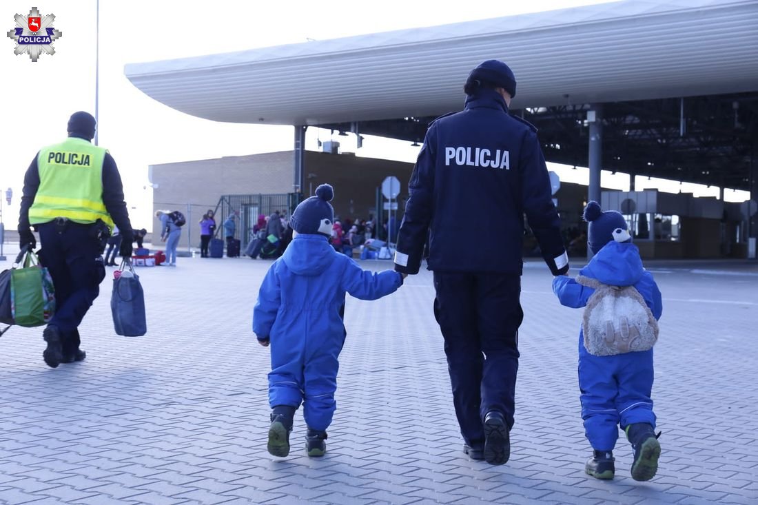 Po przeszło dobie oczekiwania na przekroczenie granicy polsko – ukraińskiej, czwórka rodzeństwa trafiła do punktu recepcyjnego w Lubyczy Królewskiej. Dziećmi w wieku od 11 do 2 lat opiekował się najstarsza z rodzeństwa 18-latka, ponieważ ich ojciec musiał pozostać na terenie Ukrainy. W punkcie recepcyjnym całą czwórką, przemarzniętą i przestraszoną zajęli się pełniący tam służbę policjanci z OPP we Wrocławiu. Nawiązali kontakt z mamą dzieci, która z odległych stron Polski jechała żeby je odebrać. Kobieta po przybyciu na miejsce podziękowała serdecznie za okazaną pomoc i opiekę nad dziećmi. Mundurowi natomiast otrzymali od jednej z dziewczynek rysunek na pamiątkę.