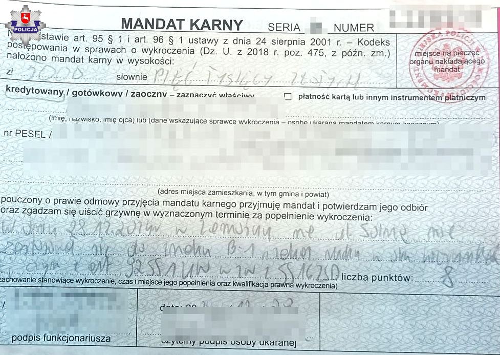 Policjanci zareagowali na ignorowanie przepisów ruchu drogowego. Funkcjonariusze przeprowadzili kontrolę, a za popełnione wykroczenie nałożyli na kierującego BMW 20-latka z Tomaszowa Lubelskiego mandat karny w wysokości 5 tysięcy złotych. Na konto kierowcy wpadło też 8 punktów karnych.