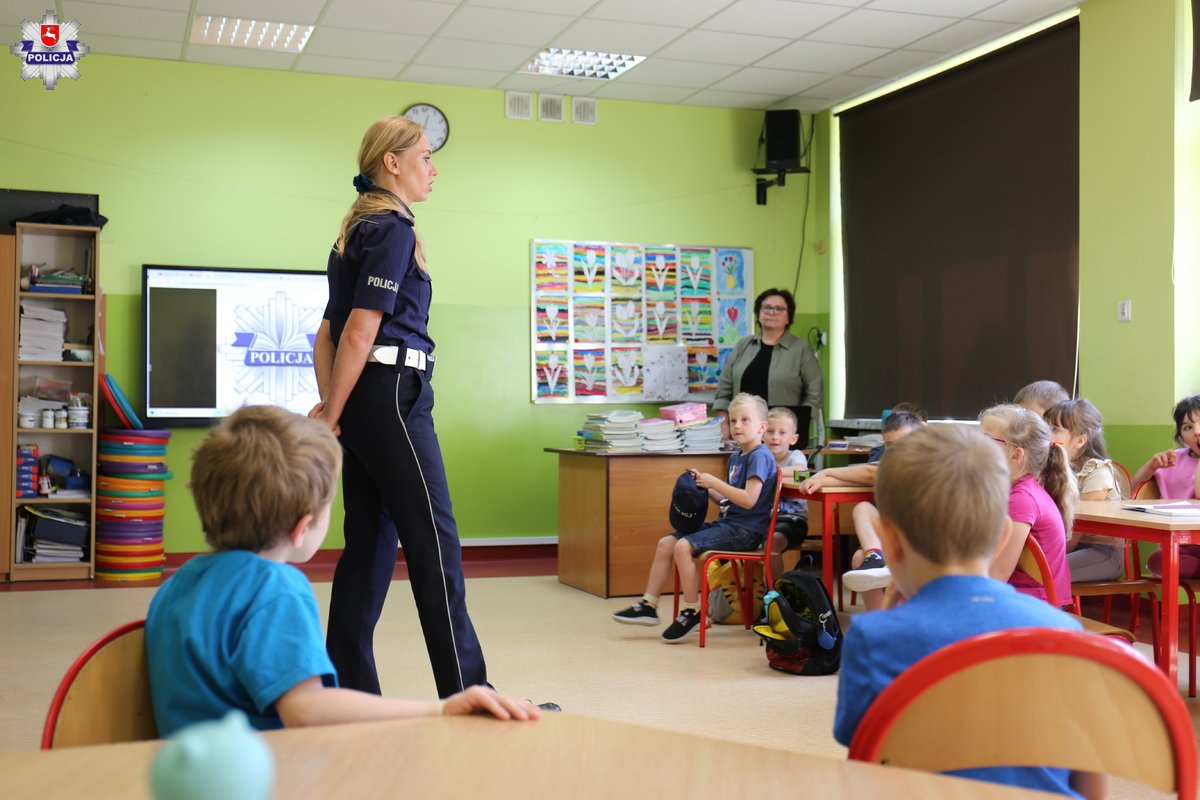 W czwartek w ramach akcji informacyjno-edukacyjnej „Kręci mnie bezpieczeństwo w lecie” klasę 0 d w Szkole Podstawowej nr 1 im. Jana Pawła II w Bełżycach odwiedzili lubelscy policjanci. Funkcjonariusze wspólnie z maskotką policyjną „Sierżantem Alicją” przypomnieli dzieciom zasady bezpiecznego spędzania letniego wypoczynku. Mundurowi rozmawiali z przedszkolakami o ich bezpieczeństwie podczas zabaw w domu, na świeżym powietrzu, czy też podczas zorganizowanego wypoczynku.