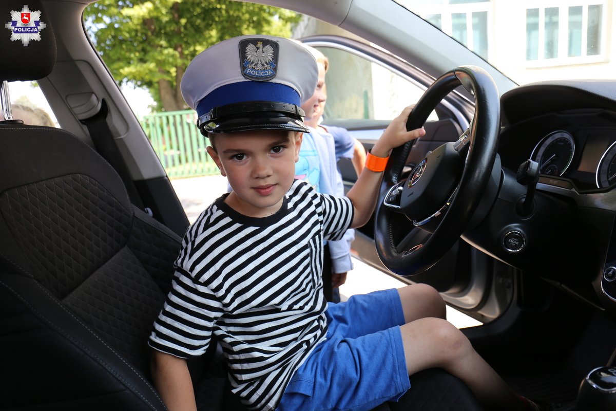 Na zakończenie każde dziecko mogło zrobić sobie pamiątkowe zdjęcie z policyjną maskotką oraz usiąść za kierownicą policyjnego radiowozu.