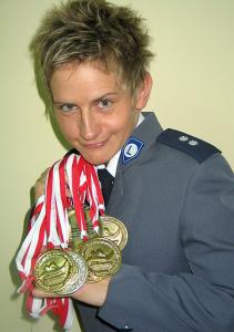 Od momentu wstąpienia do służby w Policji, czyli od 1999 roku pani podkomisarz uczestniczy w organizowanych co roku Mistrzostwach Polski Służb Mundurowych w Pływaniu, które odbywają się w Wyższej Szkole Policji w Szczytnie. Tylko dwukrotnie opuściła mistrzostwa z powodu wyjazdu na misję pokojową do Kosowa. Ale na każdych mistrzostwach zaliczała najwyższe miejsca na podium zdobywając złote medale. Jej kolekcja medali jest dosyć pokaźna, bowiem liczy ich ponad dwadzieścia, z tego siedem medali to złoto.