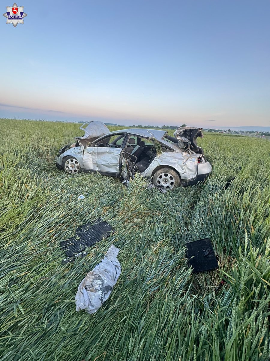 Dużo szczęścia miał nietrzeźwy 23-latek z Piask, który dachował dziś rano w miejscowości Kębłów. Kierowca stracił panowanie nad pojazdem, skutek czego jego Audi wypadło z drogi i zatrzymało się około 150 metrów od drogi serwisowej. Uszkodzony pojazd na polu został ujawniony przez Patrol Drogi, który powiadomił służby i przystąpił do szukania osób poszkodowanych. Okazało się, że 50 metrów od wraku samochodu w zbożu...spał w najlepsze pijany kierowca. Miał ponad 1,5 promila alkoholu w organizmie. Nie odniósł poważnych obrażeń.