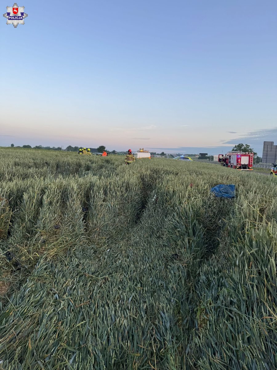 Uszkodzony pojazd stojący na polu został ujawniony przez Patrol Drogi, który od razu powiadomił służby i przystąpił do szukania osób poszkodowanych w zdarzeniu. Okazało się, że kierowca... spał w zbożu około 50 metrów od pojazdu.