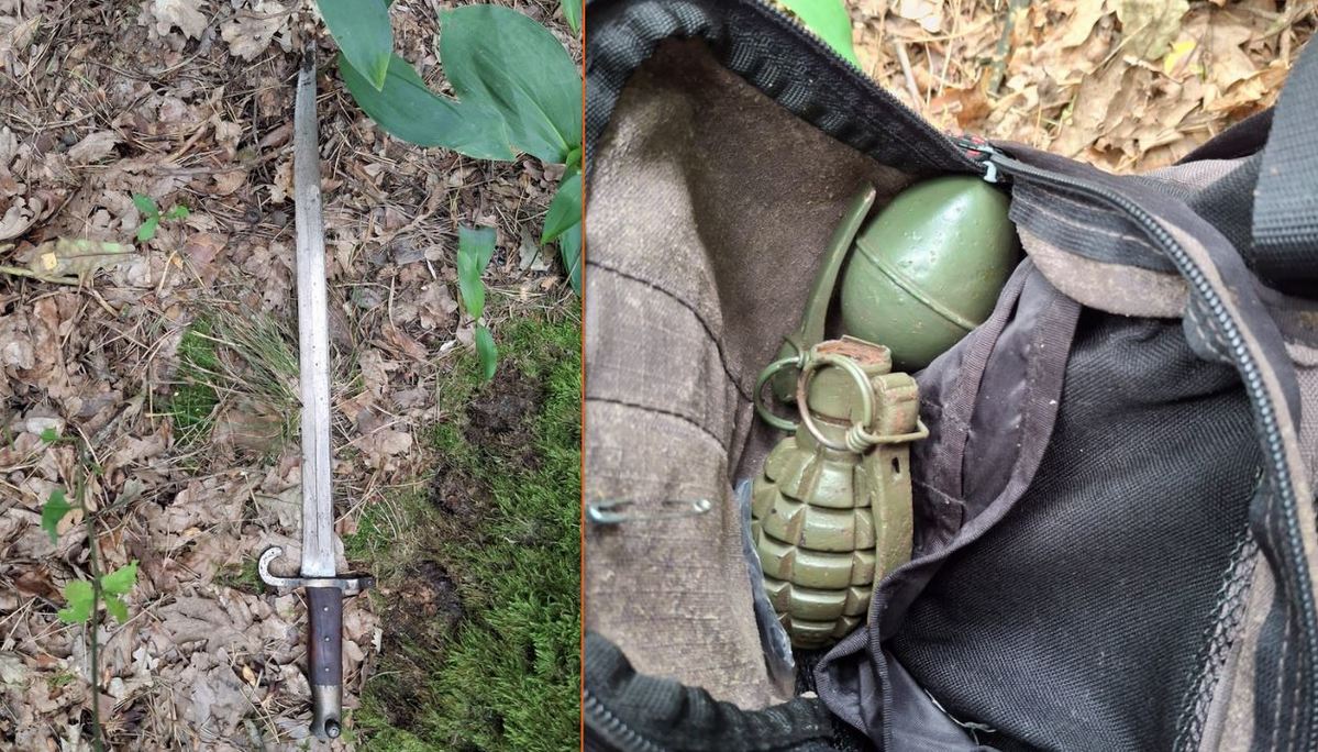 Zatrzymanym okazał się 53-letni mieszkaniec Poniatowej. W jego plecaku policjanci ujawnili 2 granaty ręczne, a w kieszeniach bluzy i spodni ostrą amunicję.