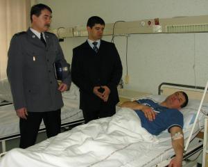 Dzisiaj rano Komendant Miejski Policji w Zamościu nadkom. Konrad Piziorski wraz ze swoim Zastępcą odwiedzili przebywającego w szpitalu Jacka Łagowskiego funkcjonariusza Sekcji Ruchu Drogowego Komendy Miejskiej Policji w Zamościu. Wczoraj w nocy policjant stał się ofiarą brutalnego pobicia.