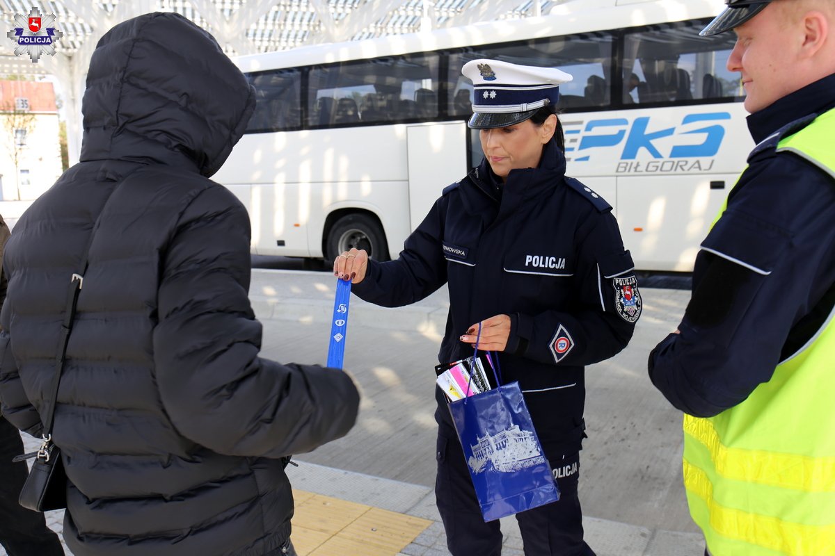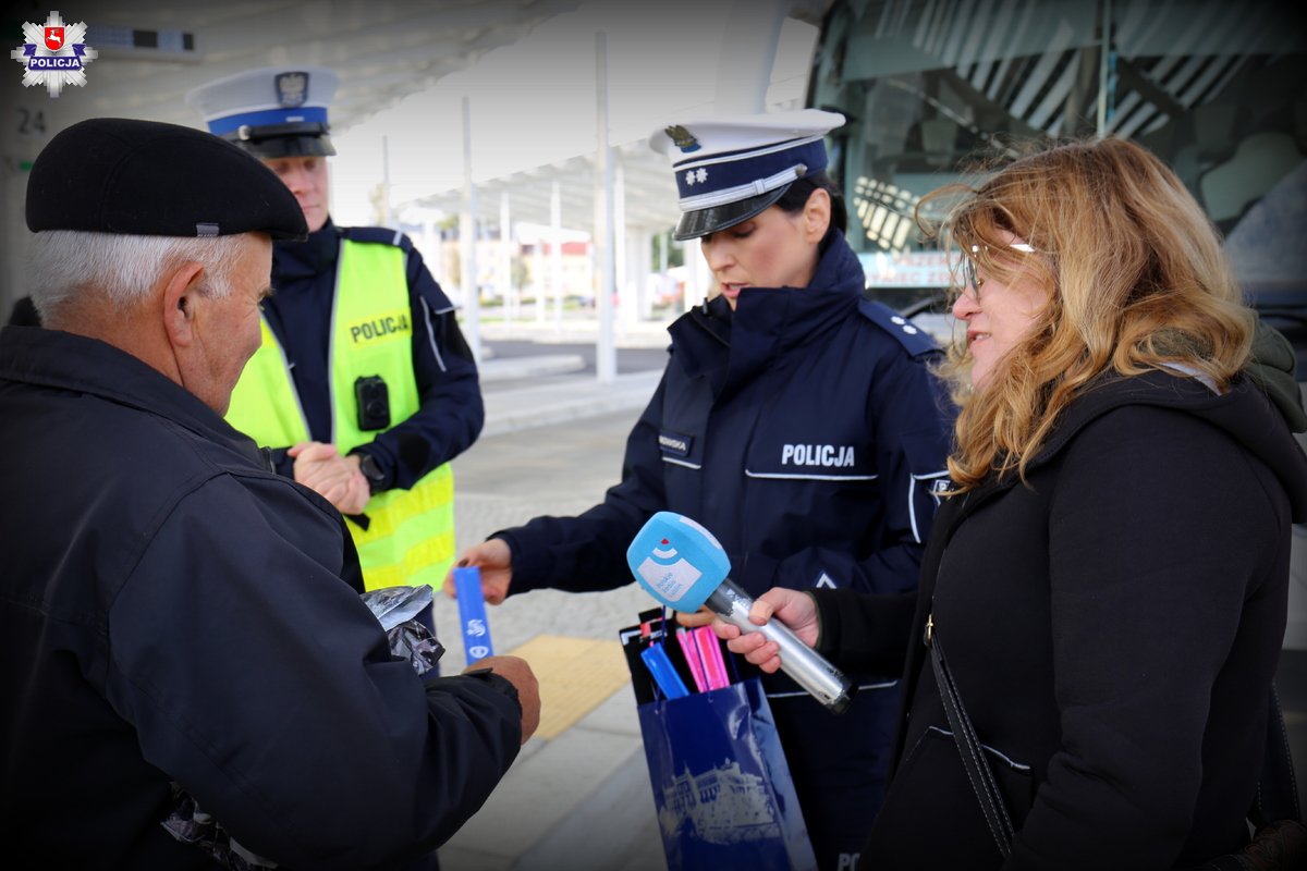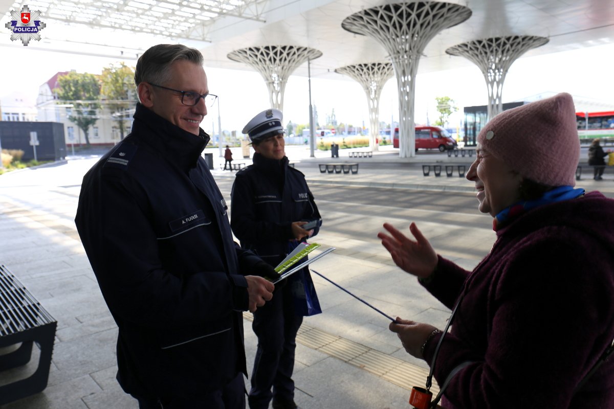 Dzisiaj z okazji „Ogólnopolskiego Dnia Odblasków” policjanci z Wydziału Ruchu Drogowego Komendy Wojewódzkiej Policji w Lublinie i Komendy Miejskiej Policji w Lublinie rozdawali odblaski pieszym na terenie Dworca Metropolitarnego w Lublinie. Działania te zainaugurowały akcję informacyjno-edukacyjną pn. „Świeć Przykładem – Noś Odblaski”, która będzie trwała do końca roku. Jej celem jest zwiększenie bezpieczeństwa pieszych jako niechronionych uczestników dróg. Podczas krótkich rozmów mundurowi informowali jak ważne jest noszenie odblasków.