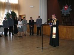 Pani Wojewoda Genowefa Tokarska stwierdziła, że jest bardzo częstym gościem w naszej komendzie, lecz nie wyobraża sobie, by świątecznych życzeń dla policjantów nie przekazać osobiście. Do życzeń dołączył się również Pan Marszałek. Ks. biskup Artur Miziński poświęcił jajka i inne potrawy, życząc wszelkiej pomyślności i błogosławieństwa w policyjnej służbie, która w jest w pewnym sensie powołaniem.
