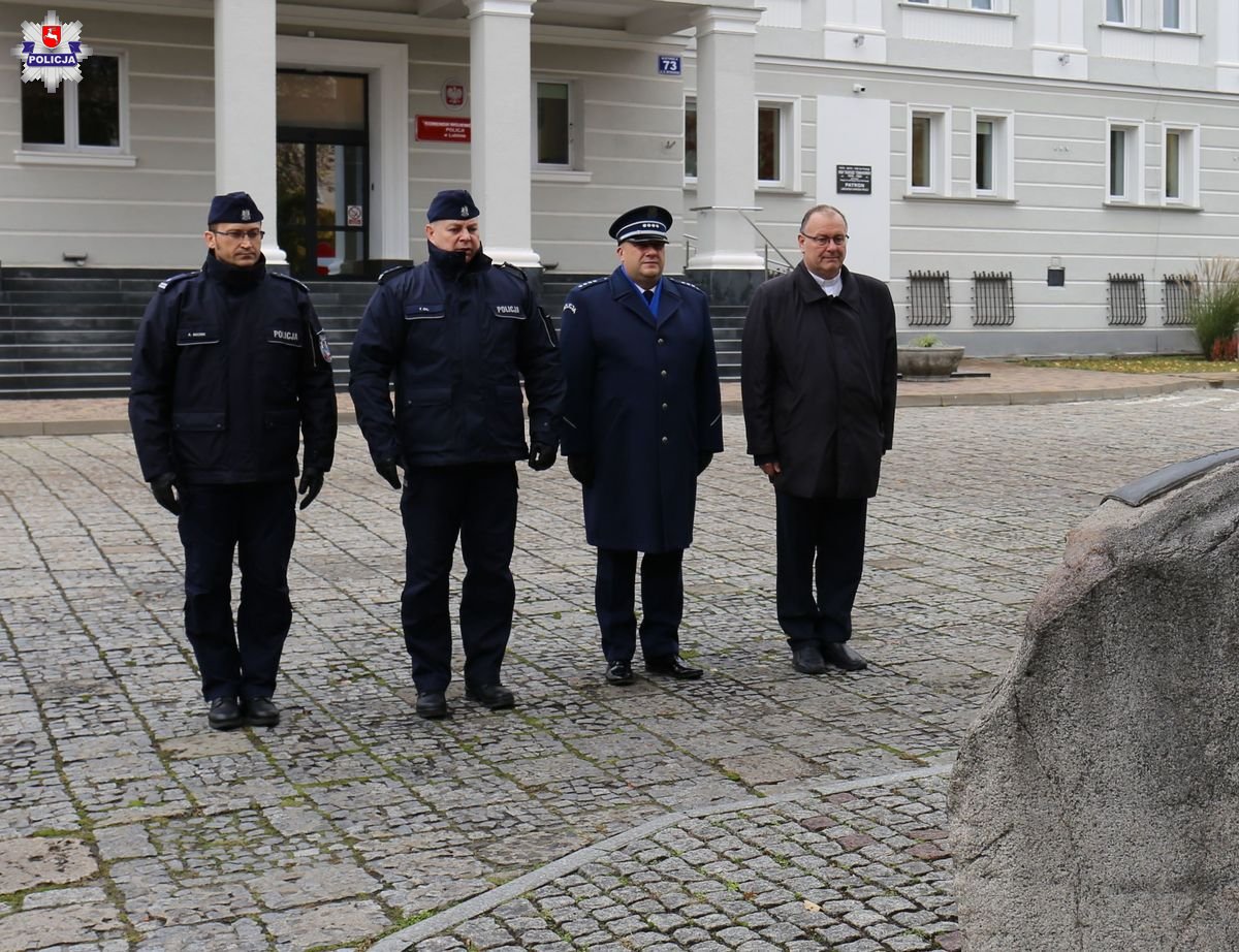 Dziś rano na placu przed budynkiem KWP w Lublinie Komendant Wojewódzki Policji w Lublinie inspektor Tomasz Gil, Komendant Miejski Policji w Lublinie podinsp. Adam Beczek, Przewodniczący Zarządu Wojewódzkiego NSZZ Policjantów województwa lubelskiego nadkomisarz Andrzej Wójcik oraz kapelan Policji Lubelskiej ks. Bogdan Zagórski zapalili znicz pod Pomnikiem Poświęconym Pomordowanym Policjantom II Rzeczypospolitej jako wyraz hołdu wszystkim poległym Funkcjonariuszom Policji pomordowanym na wschodzie w okresie II wojny światowej.