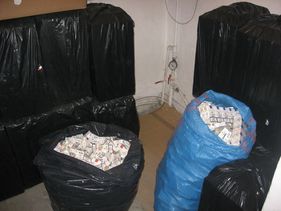 Ponad 15 tys. paczek papierosów i 1000 litrów alkoholu bez polskich znaków akcyzy zabezpieczyli wczoraj policjanci na terenie magazynów należących do 38-letniego mieszkańca Chełma. Jak ustalili policjanci, wartość uszczuplenia należnego podatku akcyzowego to kwota ponad 90 tys. złotych. Policjanci posiadając informacje o bezakcyzowych wyrobach weszli wczoraj na teren magazynów przy ul. Rampa Brzeska w Chełmie. W pomieszczeniu, gdzie był rozładowywany samochód osobowy, funkcjonariusze ujawnili dwa worki papierosów, jak się okazało bez akcyzy. W trakcie kolejnych przeszukań funkcjonariusze natrafili na dwa pomieszczenia zabezpieczone metalowymi drzwiami. Policjanci dostali się do środka wyważając drzwi. Ich podejrzenia potwierdziły się. Tam ukryte były kolejne bezakcyzowe wyroby: ponad 15 000 paczek papierosów i 1100 litrów alkoholu w pojemnikach o pojemności 5 litrów.