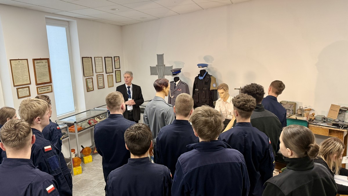 Promowanie zawodu policjanta - uczniowie oddziałów o profilu mundurowym z Zespołu Szkół w Radoryżu Smolanym z wizytą w policyjnej Izbie Pamięci