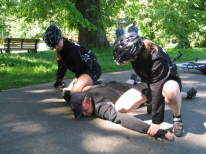 Lubelscy policjanci, którzy pełnią służbę patrolową na rowerach szkolą się pod okiem specjalistów z holenderskiej Policji. Jest to kolejny etap doskonalenia umiejętności nabytych przez naszych funkcjonariuszy. Podczas dzisiejszego szkolenia policjanci z Holandii zaprezentowali wypracowane przez siebie techniki jazdy, niezbędne podczas pełnienia służby na rowerze. Dojadą tam gdzie nie dotrze patrol zmotoryzowany, poruszają się szybciej niż patrol pieszy, dbają o bezpieczeństwo w parkach i na ścieżkach rowerowych. Chronią przed kradzieżami, rozbojami i zakłócaniem porządku. Mowa o policjantach, którzy w sezonie letnim pełnią służbę patrolową na rowerach. Po raz pierwszy patrole rowerowe pojawiły się na ulicach Lublina w 2002 roku. W tym roku służbę patrolową na rowerach, pełni 7 policjantów (w tym dwie Panie). Przygotowanie policjantów do pełnienia tej formy służby wymagało podjęcia wielu przedsięwzięć. Poczynając od zapewnienia środków finansowych i przeprowadzenia specjalistycznych badań lekarskich ogólnej wydolności fizycznej policjantów, poprzez skompletowanie i zakupienie profesjonalnego sprzętu rowerowego.