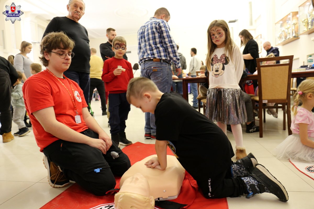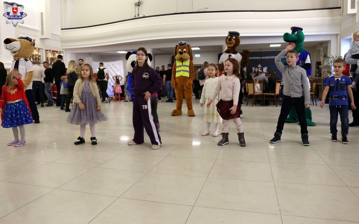 Na dzieci, których było prawie 170 czekało wiele atrakcji. Na początek zabawę taneczną poprowadził animator zabaw z dziećmi. Wspólnie z najmłodszymi bawiły się policyjne maskotki, których stroje założyli uczniowie klas policyjnych z XVIII Liceum Ogólnokształcące w Lublinie: inspektor Franek z KWP w Lublinie, aspirant Koziołek z Zarządu Wojewódzkiego NSZZ Policjantów, sierżant Poli z KMP w Lublinie, sierżant Pantera Śnieżna z KPP w Lubartowie, sierżant Lew Leon z KPP Puławy, smok Dino z KMP w Białej Podlaskiej i sierżant Lew z KPP w Hrubieszowie. Licealiści zadbali również o to, by każda uśmiechnięta buzia była pięknie wymalowana.