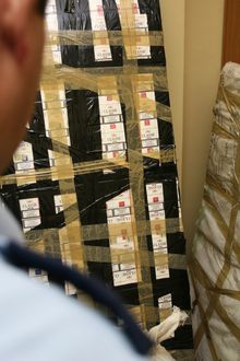 Policja zatrzymała mężczyznę, który na giełdzie spożywczej przy ul. Pancerniaków w Lublinie sprzedawał nielegalny alkohol i papierosy. W jego samochodzie i mieszkaniu teściowej mężczyzny, policjanci znaleźli niemal 9,5 tys. paczek papierosów i ponad 100 litrów alkoholu bez polskich znaków akcyzy skarbowej.