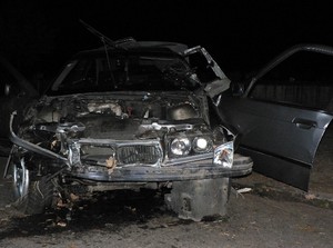 Dzisiaj, tuż po godzinie 2.00 w nocy w Kocku na ulicy Cmentarnej, policjanci zauważyli na poboczu wrak rozbitego BMW. W środku siedział uwięziony ciężko ranny kierowca. Wezwana na miejsce karetka przewiozła mężczyznę do szpitala. Policjanci ustalili, że kilkanaście minut wcześniej kierujący BMW 22 - letni mieszkaniec gm. Ostrówek jadąc najprawdopodobniej z nadmierną prędkością na łuku jezdni stracił panowanie nad pojazdem i wpadł w poślizg. BMW zjechało na lewą stronę i sunąc bokiem uderzyło po kolei w trzy przydrożne drzewa. Potężna siła uderzenia odrzuciła auto na prawe pobocze. Kierujący BMW, 22 - latek z poważnymi obrażeniami ciała został przewieziony do szpitala.