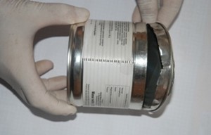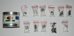 Postanowili otworzyć konserwę mającą zawierać kaszę z gulaszem. Gdy uchylili wieko puszki ich oczom ukazały się wycofane z obiegu monety polskie oraz dwie metalowe śruby okręcone papierem. Przedmioty te zapewniały „konserwie” odpowiednia wagę. Niżej znajdowała się nakrętka od słoika typu twist, a pod nakrętką woreczki z zapięciem strunowym wypełnione białym proszkiem. Tester wykazał, że proszek z woreczków to amfetamina.