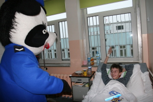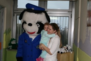Kiedy nasza policyjna maskotka oraz oczywiści św. Mikołaj pojawili się na szpitalnym korytarzu od razu na buziach dzieci zagościł uśmiech. To bardzo ważne, bo właśnie niesienie radości i uśmiechu jest znaczącym krokiem do ich wyleczenia.
