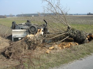 Do zdarzenia doszło dzisiaj o godzinie 10:30 w miejscowości Kozłówka k. Lubartowa. Jak ustalili policjanci, kierujący volkswagenem golfem 46-letni mieszkaniec gm. Kamionka, jadąc w kierunku Lubartowa, najprawdopodobniej stracił panowanie nad pojazdem. W wyniku tego zjechał na lewą stronę jezdni, a następnie uderzył w przydrożne drzewo. Siła uderzenia była tak duża, że drzewo zostało powalone a samochód przewrócił się na dach.