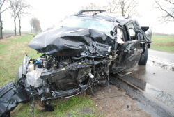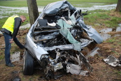 Do wypadku doszło wczoraj około godz. 17.20 na drodze W – 815 w miejscowości Paszenki. Pojazd osobowy marki Nissan Navara jadąc w kierunku Parczewa zjechał na przeciwległy pas ruchu doprowadzając do zderzenia czołowego z oplem. Wyniku zderzenia pojazdów opel zjechał do rowu i zatrzymał się przy drzewie. Uderzenie było tak silne, że kierowca opla 36-letni mieszkaniec Lublina zginął na miejscu. Natomiast kierowca nissana 24 – letni Kamil D i pasażer opla 38 –letni Grzegorz S. w ciężkim stanie zostali przewiezieni do szpitala.