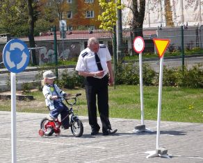 Końcowym etapem konkursu była jazda po małym miasteczku ruchu drogowego. I tu również zawodnicy z uśmiechem na małych twarzach, wspaniale sobie poradzili. Na swoich jednośladach precyzyjnie pokonali wszystkie elementy toru.