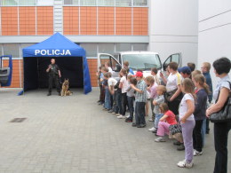 Podczas spotkania policjanci opowiadali dzieciom o zagrożeniach, z jakimi młodzi ludzie mogą spotkać się na podwórku, podczas wykonywania prac polowych czy na drodze. Atrakcją dla dzieci był pokaz policyjnych psów. Przewodnicy demonstrowali co potrafią policyjne czworonogi. Przypominali jak zachować się przed atakiem zwierzęcia oraz czego unikać by nie sprowokować psa. Kolejnym punktem spotkania była prezentacja radiowozu z wideorejstratorem zwanych przez kierowców "sreberkiem".