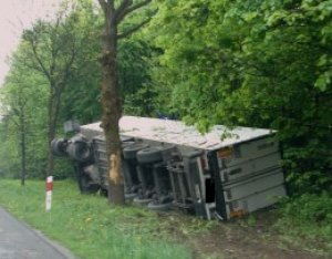 Jak wstępnie ustalili policjanci, 27-letni mężczyzna kierując ciągnikiem siodłowym z naczepą nagle zjechał z drogi i wjechał do przydrożnego rowu uderzając w drzewo. W wyniku zderzenia kierowca został uwięziony w kabinie ciężarówki. W wyniku podjętej akcji ratowniczej wydobyto mężczyznę z rozbitego samochodu i przewieziono do szpitala, gdzie pozostał na obserwacji.