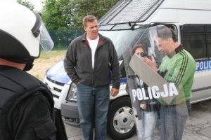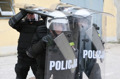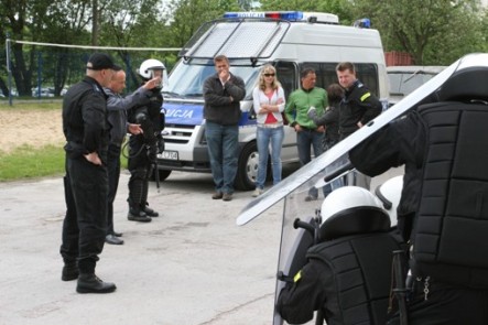 Przez kilka dni pobytu na naszym regionie, instruktorzy ds. zabezpieczania masowych imprez sportowych mieli okazję przyjrzeć się taktyce zabezpieczania meczy piłkarskich podczas rozgrywek ligowych. Goście swoją wizytę rozpoczęli od zwiedzenia Samodzielnego Pododdziału Prewencji Policji, gdzie zapoznali się ze sprzętem prewencyjnym, wykorzystywanym w trakcie zabezpieczania imprez masowych.