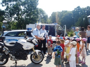Dzieci swoim uśmiechem nie ukrywały radości z możliwości zwiedzania jednostki. Każdy z nich mógł wsiąść do radiowozu czy też za kierownicę policyjnego motocykla. Wszyscy chętnie przymierzali policyjne kaski, tarcze, kajdanki i kamizelki kuloodporne. Technik kryminalistyki pokazywał w jaki sposób zabezpiecza się ślady na miejscu przestępstwa. Wszystkie dzieci mogły zrobić sobie pamiątkowe odciski palców.