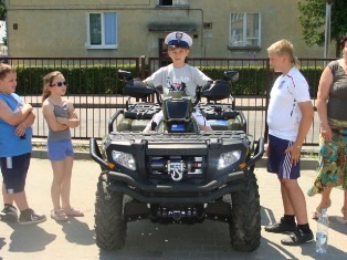 Atrakcją dla najmłodszych okazał się również ,,konkurs wiedzy" przeprowadzony przez specjalistę ds. nieletnich. Dzieci, które okazały się największą wiedzą z zakresu bezpiecznego poruszania się po drogach , właściwego postępowania w kontaktach z obcymi osobami, czy też znajomości telefonów alarmowych oraz sposobem zgłaszania takich zdarzeń, otrzymali upominki w postaci piłek plażowych ufundowanych przez Starostwo Powiatowe w Hrubieszowie.