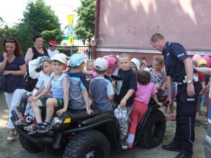 Policjanci zaoferowali uczestnikom festynu możliwość oznakowania rowerów, jednakże największą atrakcją przygotowaną był pokaz sprzętu. Licznie zebranym dzieciom i młodzieży zaprezentowano nowoczesne samochody Ford Mondeo i Kia Sorento oraz motocykl marki Triumph a także najnowszy nabytek – quad.