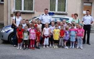 Wczoraj do kraśnickiej komendy przybyli mali goście. Dzieci z przedszkola w Zdziechowicach pow. Stalowa Wola z zaciekawieniem oglądały sprzęt policyjny i poznawały pracę policjantów. Po komendzie oprowadzał je nadkom. Krzysztof Bijak z Wydziału Prewencji.