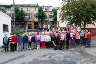 W trakcie spotkania dzieci dowiedziały się o pracy policjantów kryminalnych, prewencji, ruchu drogowego oraz o tym jak być bezpiecznym w domu, w szkole i podczas wypoczynku oraz sposobów obrony w kontaktach z psem agresywnym i bezdomnym.