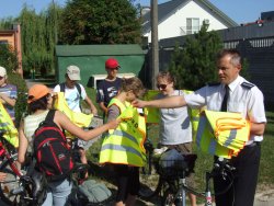 Dzięki uprzejmości Wojewódzkiego Ośrodka Ruchu Drogowego w Chełmie uzyskano kamizelki odblaskowe, w które policjanci wyposażyli wszystkich uczestników rajdu. O 8.30 rowerzyści pilotowani przez funkcjonariuszy ruchu drogowego wyruszali na trasę.
