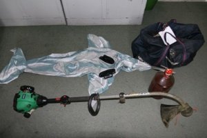 Wczoraj nad ranem policyjni wywiadowcy zauważyli przy Unii Lubelskiej trzech młodych mężczyzn, którzy szli od strony ogródków działkowych. Policjanci zwrócili na nich uwagę z racji przedmiotów, które mężczyźnie mieli przy sobie. Jeden z nich niósł kosiarkę do trawy, drugi, dmuchany materac w kształcie delfina z kolei trzeci taszczył około 10 litrowy gąsior na wino.