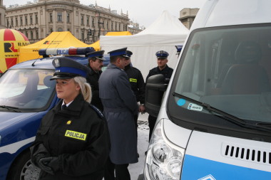 Policjanci w głównym punkcie zbiórki na Placu Litewskim zorganizowali dla mieszkańców miasta pokaz wykorzystywanego w codziennej służbie sprzętu.