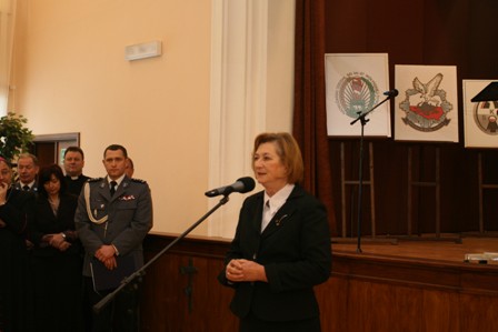 Wojewoda Lubelski - Pani Genowefa Tokarska powitała wszystkich gości i podkreśliła, że był to wyjątkowo trudny i pracowity rok dla wszystkich służb mundurowych. Przypomniała pracę na rozlewisku w rejonie rzeki Bug oraz determinację służb mundurowych w niesieniu pomocy podczas tegorocznej powodzi na Lubelszczyźnie.