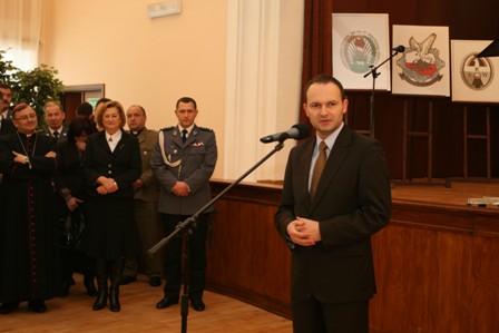 Lubelski Komendant Wojewódzki insp. Dariusz Działo w imieniu wszystkich służb mundurowych powitał zgromadzonych na sali gości w tym przedstawicieli instytucji ochrony prawa, przedstawicieli stowarzyszeń i związków oraz komendantów miejskich i powiatowych naszego garnizonu.