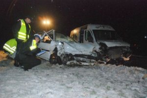 Ze wstępnych ustaleń wynika, że osobowy opel zjechał na lewy pas w wyniku czego doszło do zderzenia pojazdów. Na drodze panowały niesprzyjające warunki, zapadający zmierzch, padający śnieg i śliska nawierzchnia.