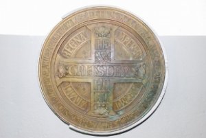 Na zewnętrznym okręgu widniały napisy: „ZA UCAŁOWANIE JEGO KRZYŻA UMIESZCZONEGO W KOŚCIELE I ODMÓWIENIE OJCZE NASZ 200 DNI ODPUSTU RAZ NA DZIEŃ.” W następnym kręgu umieszczony był napis: „VIVIT REGNAT IMPERAT MCMI". Z kolei w krzyż wpisane były słowa: w pionie: „IESUS CHRISTUS DEUS HOMO”. Proboszcz Parafii wartość strat oszacował wstępnie na kwotę 1500 zł. Jednak znak posiada przede wszystkim nieoszacowaną wartość pamiątkową.