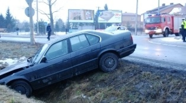 Lubartów: Bmw przecięło rondo i wpadło do rowu