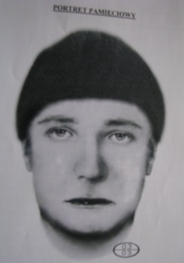 Wiek drugiego ze sprawców został określony na pomiędzy 25 a 30 lat. Jego wzrost to około 175 cm. budowa ciała normalna, twarz elipsoidalna, cera jasna. Sprawca miał na głowie ciemną wełnianą czapkę oraz ubrany był w granatową ortalionową kurtkę i ciemne spodnie.