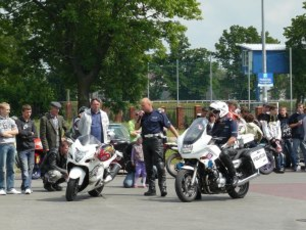 Motocykliści, którzy przybyli na spotkanie prezentowali swoje maszyny i sprawdzali swoje umiejętności w slalomie i powolnej jeździe. Swoje umiejętności mogli sprawdzić również w przygotowanym konkursie rowerzyści, których zmagania wywołały wiele emocji. W trakcie spotkania każdy uczestnik mógł również oznakować swój rower. Spotkanie zakończył konkurs wiedzy o ruchu drogowym oraz tankowanie paliwa.
