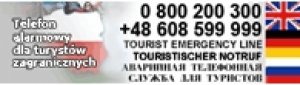 Od dziś rusza tzw. telefon bezpieczeństwa dla turystów. Linia jest obsługiwana w trzech językach: angielskim, niemieckim i rosyjskim. Operatorzy doradzają turystom, którzy oczekują pomocy ze strony służb publicznych, a w razie potrzeby kontaktują ich bezpośrednio z kompetentnym podmiotem. W celu połączenia się z operatorem wystarczy zadzwonić pod specjalne numery infolinii: 0 800 200 300 (bezpłatna - do obsługi połączeń z sieci stacjonarnych) i +48 608 599 999 (płatna - obsługuje połączenia z sieci komórkowych).