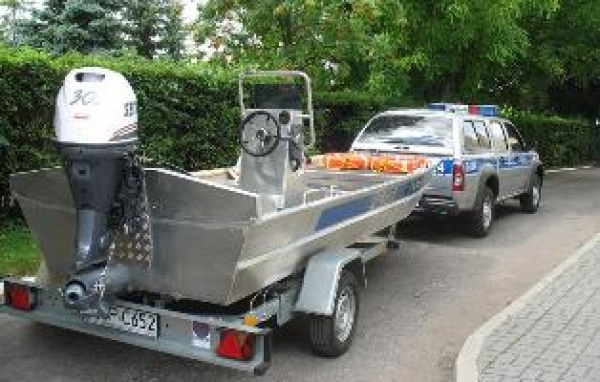 Płaskodenna aluminiowa łódź o długości 4,5 i szerokości 1,6 metra z 30-konnym silnikiem i miejscem dla 6 osób, wyposażona m.in. w koła ratunkowe, wiosła, bosak, kamizelki asekuracyjne i lampę typu „szperacz” – to podstawowe parametry i wyposażenie sprzętu wodnego jaki od dzisiaj będzie należał do Komendy Powiatowej Policji w Opolu Lubelskim. Łódź posiada także specjalną przyczepę transportową dzięki której można w sprawny sposób ją przemieszczać. Przemieszczać nawet na tereny podmokłe czy trudnodostępne dla zwykłych samochodów, ponieważ razem z przyczepą w zestawie jest także pojazd terenowy ISUZU z napędem na cztery koła i wyciągarką.