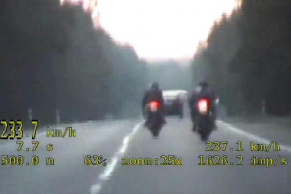 Jadący obok siebie motocykliści rozwijali niebezpieczną prędkość osiągając 233 km/h.