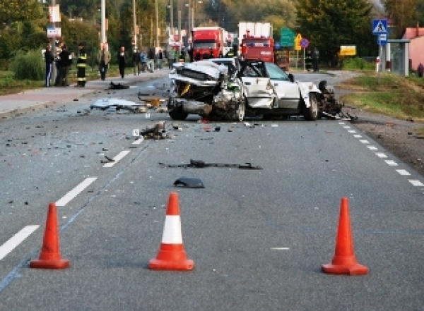 Wczoraj w miejscowości Stróża samochód osobowy został staranowany przez dwie ciężarówki. Do szpitala trafiło dwie osoby, na szczęście nie odniosły ciężkich obrażeń. Ruch na trasie nr 19 został zablokowany, policjanci kierowali pojazdy zorganizowanym objazdem. Trwa ustalanie przyczyn wypadku.