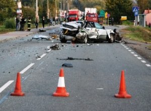Dwa silne uderzenia zniszczyły całkowicie osobowe auto. Na szczęście jadący audi nie doznali ciężkich obrażeń, zostali przewiezieni do szpitala – kierowca z potłuczeniami a pasażer ze złamaniem łopatki. Kierowcy tirów nie doznali żadnych obrażeń.