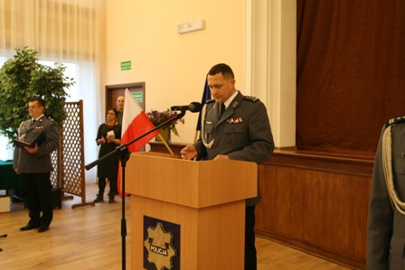 Komendant Działo, który wręczył policjantom odznaki i legitymacje pogratulował im wyboru tej drogi zawodowej, podkreślając jednocześnie szczególny charakter służby.