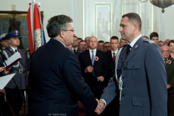 Dodał, że w przeszłości policjanci gdy trzeba było, występowali w rolach zupełnie niepolicyjnych, np. walcząc zbrojnie. - Dzisiaj również policjanci pełnią różne funkcje w ramach systemu bezpieczeństwa i obronności – dodał prezydent. Przypomniał, że funkcjonariusze, obok żołnierzy, uczestniczą w misjach pełnionych z mandatu organizacji międzynarodowych. - Polscy policjanci gwarantują nie tylko bezpieczeństwo Polski, honor Polski, ale także bezpieczeństwo ludzi tam mieszkających, powierzonych ich opiece – powiedział prezydent Komorowski.