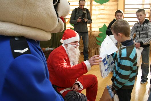 Wiara w Św. Mikołaja może jednak czynić cuda. Przekonało się dziś o tym czterdzieścioro sześcioro dzieciaków z jednej z podlubelskich podstawówek, których odwiedził z paczkami prezentów Święty Mikołaj i policyjna maskotka sierż. Poli. Wizyta niespodziewanych gości to zasługa lubelskich policjantów oraz pracowników Telewizji Lublin, którzy postanowili przywrócić uśmiech na dziecięcych twarzach po tym, jak w minionym tygodniu wyrafinowani złodzieje ograbili je z marzeń kradnąc ze szkoły wszystkie przygotowane dla nich prezenty.