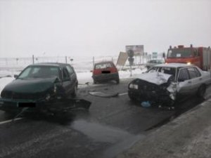 Wypadek miał miejsce dziś przed godziną 8.00 w miejscowości Mokre. Podczas wyprzedzania na łuku drogi i przy oblodzonej nawierzchni, kierujący volkswagenem golfem 31-letni mieszkaniec Zamościa czołowo zderzył się z jadącym z przeciwka volkswagenem jettą, którym kierował 47-letni Zamościanin oraz oplem corsą. Tym autem kierowała 41-letnia mieszkanka Zamościa. Kierujący pojazdami oraz dwie dziewczynki - pasażerki corsy przewiezieni zostali do szpitala. Ich życiu nie zagraża niebezpieczeństwo. Jak ustalili policjanci, wszyscy kierujący byli trzeźwi.